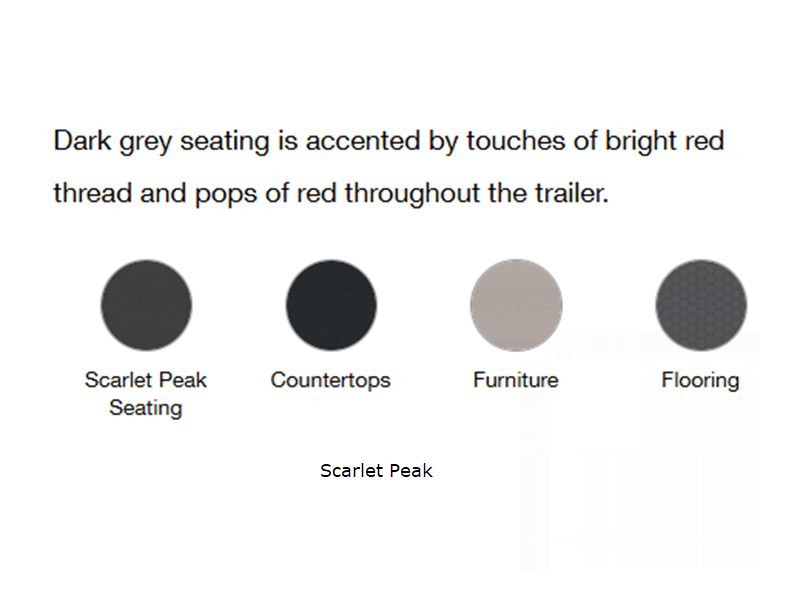Sleeps 4 Length 20 ft 2 in Ext Width 7 ft 10 in Ext Height 8 ft 10 in Int Height 6 ft 7 in Interior Color Alpine Lake, Scarlet Peak Hitch Weight 500 lbs GVWR 4300 lbs Dry Weight 3400 lbs Cargo Capacity 900 lbs Fresh Water Capacity 23 gals Grey Water Capacity 28 gals Black Water Capacity 21 gals Tire Size ST235/55R18 Furnace BTU 19000 btu Refrigerator Type 12V Electric w/Freezer Refrigerator Size 4.3 cu ft Cooktop Burners 2 LP Tank Capacity 20 lbs Water Heater Type Tankless On Demand Axle Count 1 Number of LP Tanks 2 Shower Type Wet/Bath Shower Electrical Service 30 amp Similar Floorplans