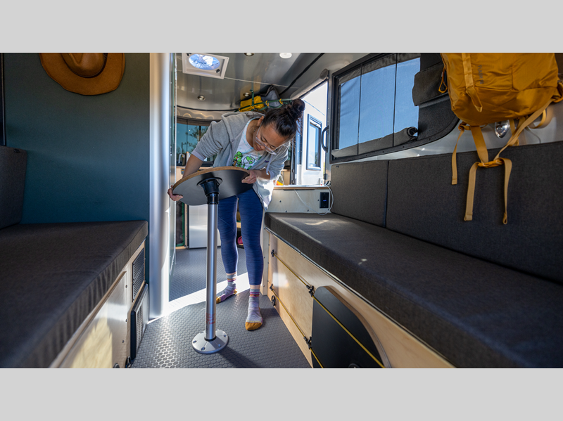 If you desire to leave a lighter eco-footprint, then the REI Special Edition Basecamp is for you. There are recycled materials, a recirculating water heater to save water, plus off-grid features, like the optional solar package. The included X-Package includes a 3" lift kit, off-road tires, and more that will allow you to maneuver tougher terrain, and the ample storage throughout means you don't have to leave behind your favorite comforts from home. You'll also find a functional galley, a nature-minded interior decor, and a versatile rear living space with seating for five and sleeping for two.